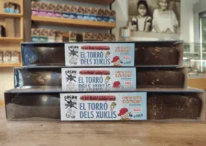 Des d’Olot, amb amor, ens arriba cada any el torró dels Xuklis gràcies a la Laura, el Lluís i en Naüm, una família més que implicada, que han fet de la seva pastisseria “CACAU” una petita ambaixada de