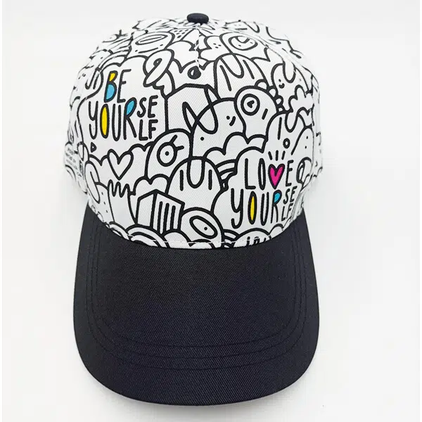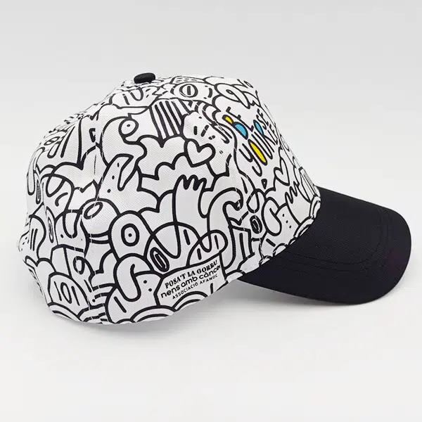 La gorra de Xevi Gallego @EYESORES , un artista osonenc instal·lat a Califòrnia que ha fet dels monstres la seva font d’inspiració i ens ha inspirat també a nosaltres amb els seus monstres ferotges, espantosos, però alhora simpàtics i curiosos que també necessiten ser abraçats.