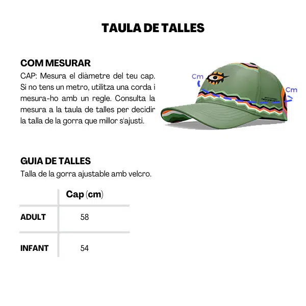 La gorra d’enguany ha estat dissenyada per TarsilaSchubert, una artista de carrer d’origen brasiler que ha dedicat la seva vida a l’art. Al frontal de la gorra hi apareix un ull amb els tons i forma de les sanefes. Un ull que és l’expressió de l’atenció, la cura i l’acompanyament ferm i continuat, necessari al llarg del procés del càncer infantil.