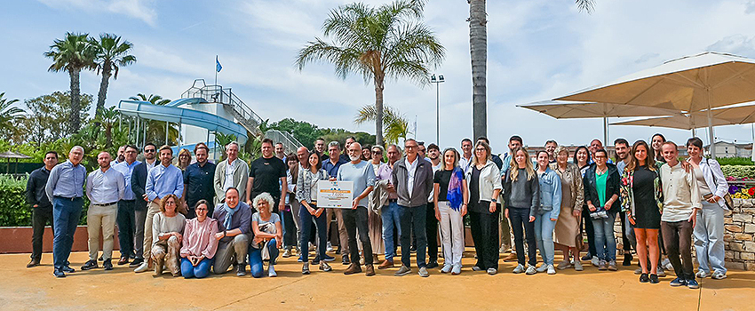 En el marco de la Asamblea General de Campings Tarragona, Mireia Sans, presidenta de la Asociación de Campings de la Costa Daurada y Terres de l’Ebre , acompañada de los representantes de los campings participantes, ha entregado los 7.020 euros recaudados al coordinador de AFANOC en Tarragona, Jordi Rodríguez.