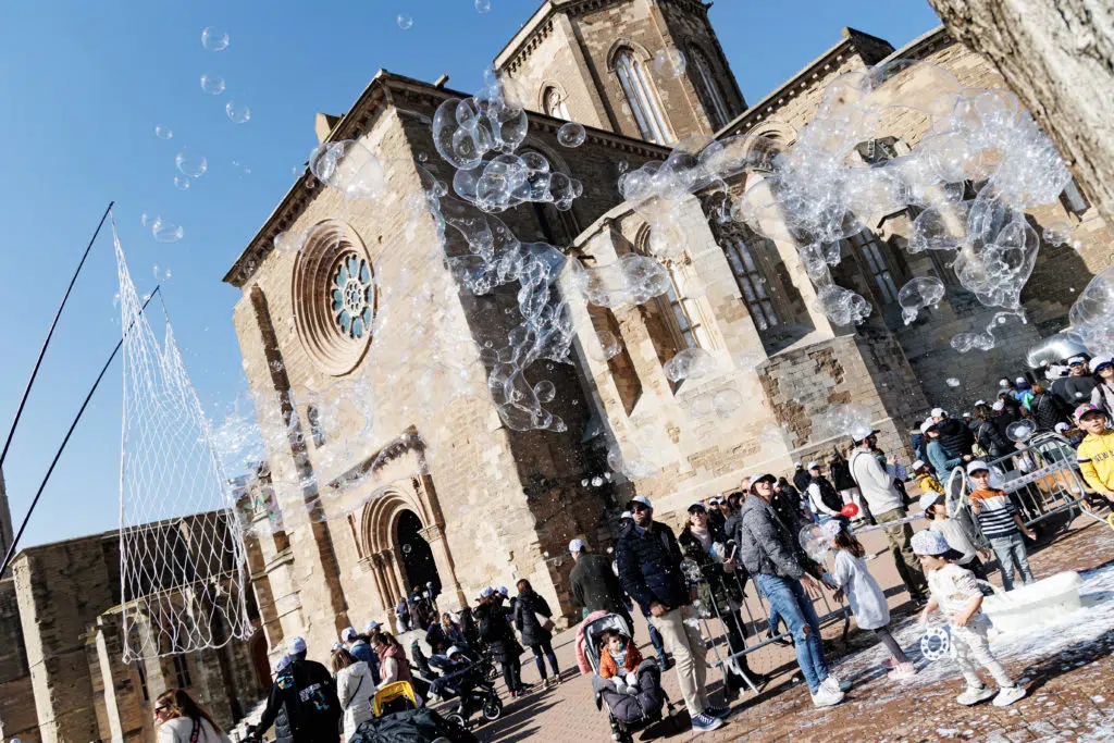 Esta edición tan especial llenó de nuevo todos los espacios y rincones de la Seu Vella con pompas de jabón, saltos infinitos en hinchables y cuentacuentos, muchos cuentos con personajes de todo tipo, desde los clásicos Tres Cerditos o el Rey León y los Piratas, a la inventada Hada de los Xuklis para dar a conocer un poco más la historia de AFANOC Lleida, que abrió sus puertas,10 años atrás.